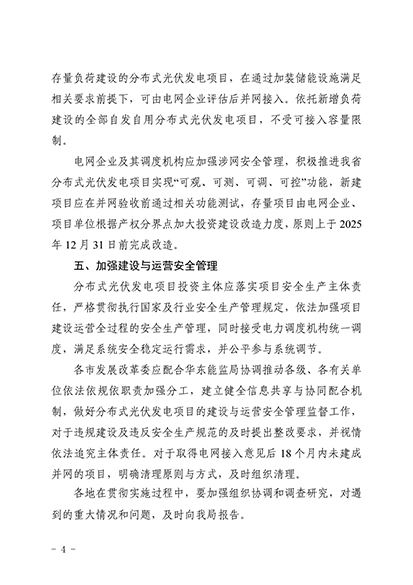 文件提出,在负荷方面,鼓励分布式光伏发电项目通过光储充一体化、源网荷储协同互动等方式提升就地消纳能力。对于暂无可开放容量地区,依托存量负荷建设的分布式光伏发电项目,在通过加装储能设施满足相关要求前提下,可由电网企业评估后并网接入。依托新增负荷建设的全部自发自用分布式光伏发电项目,不受可接入容量限制。