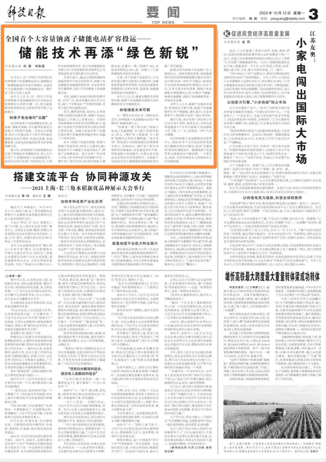 专家们表示,通过应用新的储能变流温控技术与安全防控技术,钠离子电池储能系统能量转换效率、安全性等多项关键指标,均优于同类锂离子电池储能系统。