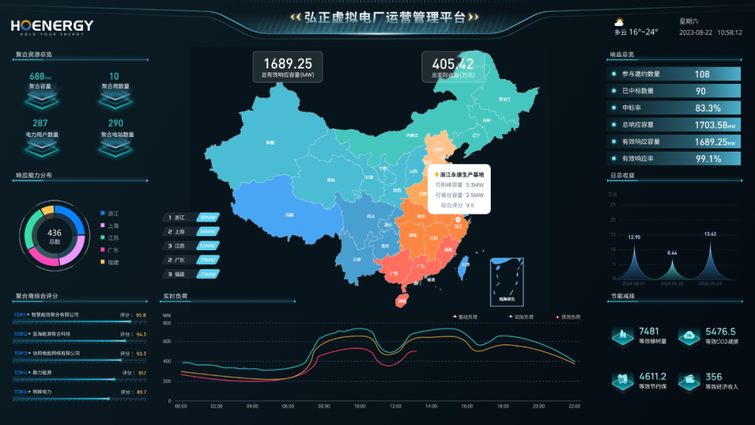 弘正储能“AI算法+大数据”为核心技术底座,自主研发了多场景适配的虚拟电厂管理平台,该平台拥有灵活的多业务响应能力,可聚合多种电力用户可调资源,通过响应与分配策略算法模型,动态计算虚拟电厂各项服务的最优控制参数,在满足电网需求的同时精准匹配资源调度策略,助力用户实现收益最优化。