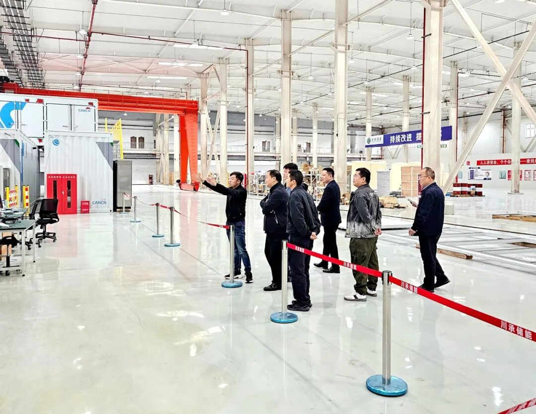 随后,调研团队深入川承储能生产一线,实地参观生产制造车间。生产中心负责人详细介绍了从核心部件制造到系统集成的全流程生产工艺,并重点展示了电堆测试平台与系统集成测试区域。调研组对川承储能在工艺管控、质量检测与技术创新等方面所展现的专业能力予以高度评价。