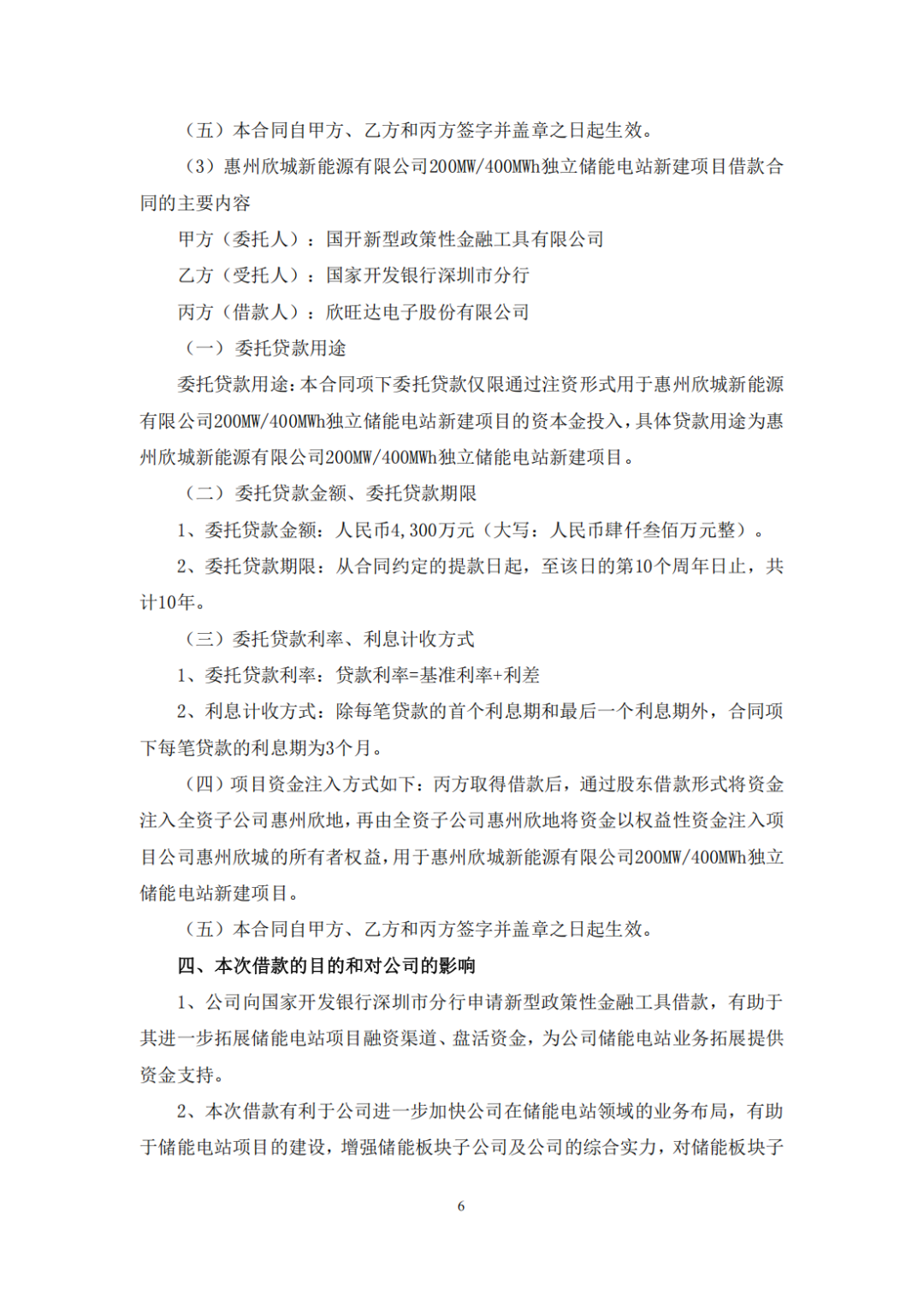 欣旺达表示,公司向国家开发银行深圳市分行申请新型政策性金融工具借款,有助于其进一步拓展储能电站项目融资渠道、盘活资金,为公司储能电站业务拓展提供资金支持。
