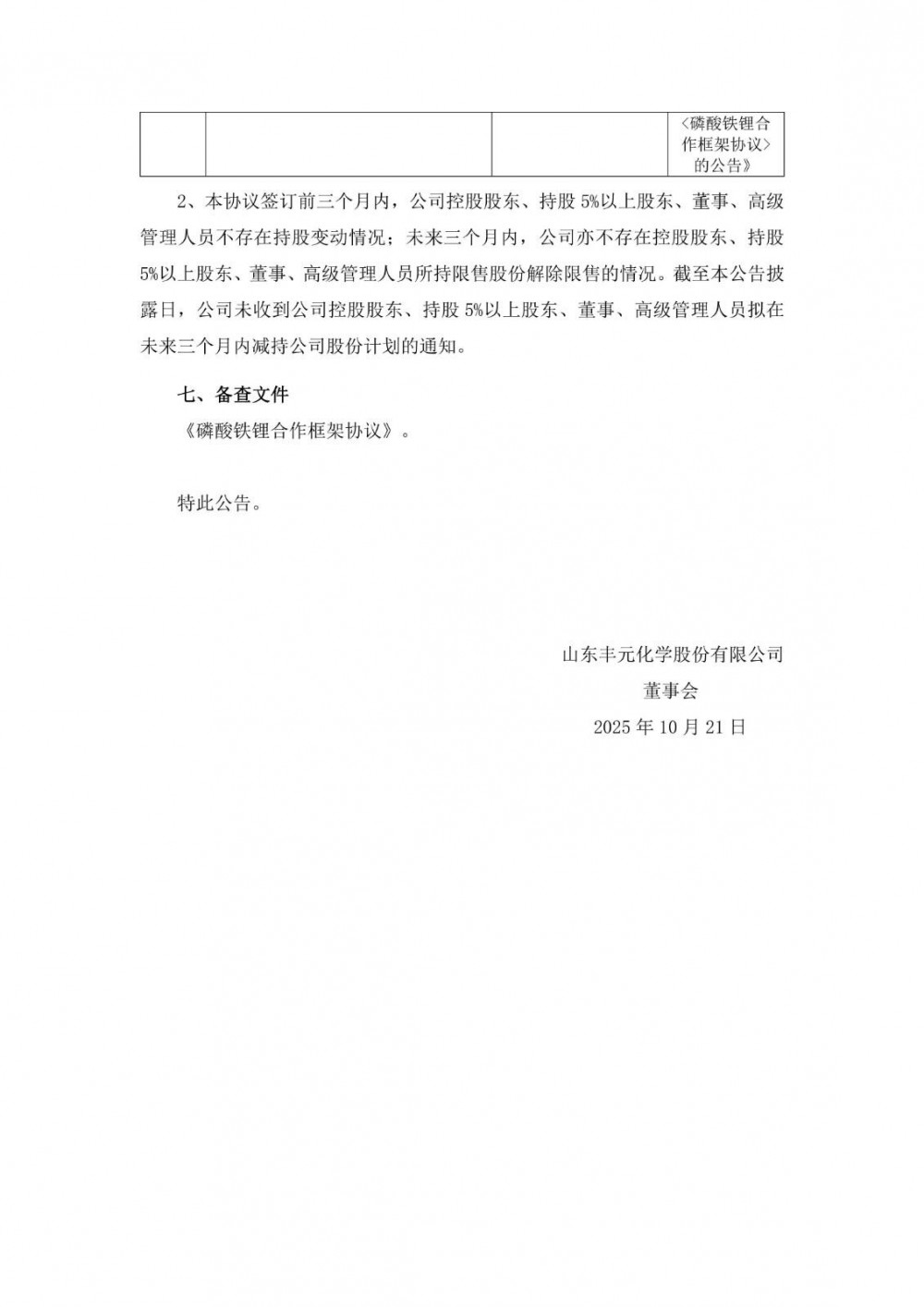 丰元股份子公司签磷酸铁锂合作框架协议 未来三年对外提供正极材料产品10万吨