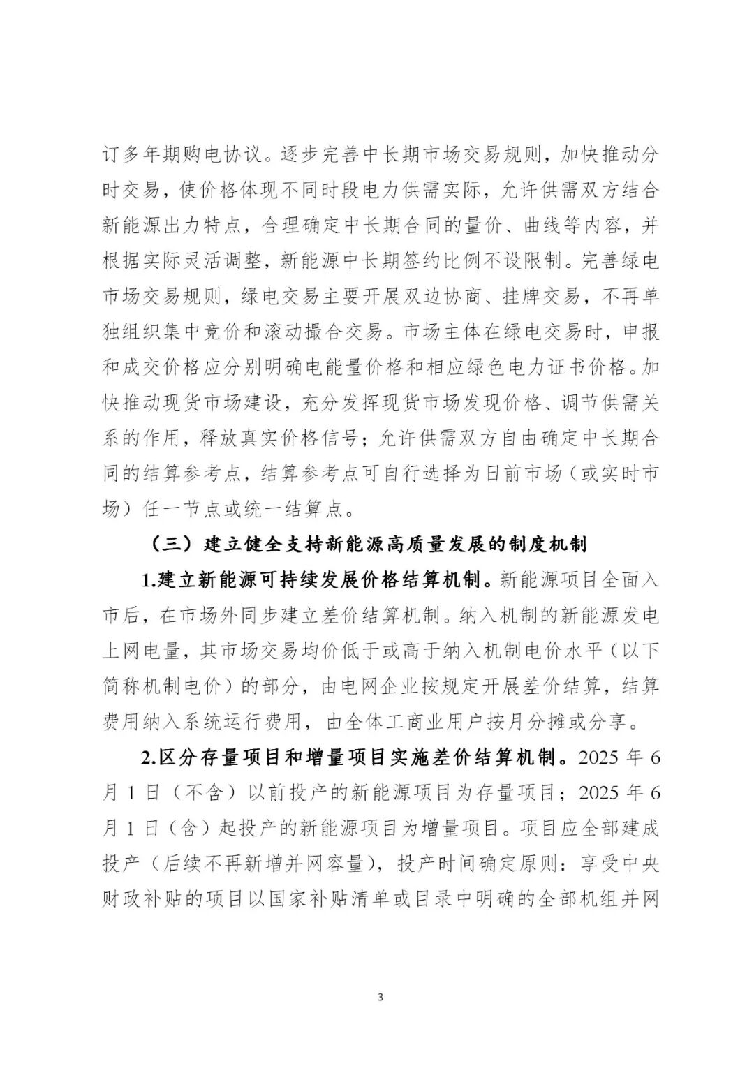 机制电量规模:存量项目机制电量规模与现行具有保障性质的新能源电量规模相衔接,单个项目纳入机制电量的年度比例默认为该项目投产年份至2025年12月31日,各自然年度域内非绿电交易电量占域内全部结算电量比例的最低值(百分比四舍五入取整)。绿电交易电量包括交易合同电量以及按交易规则结算的偏差电量。