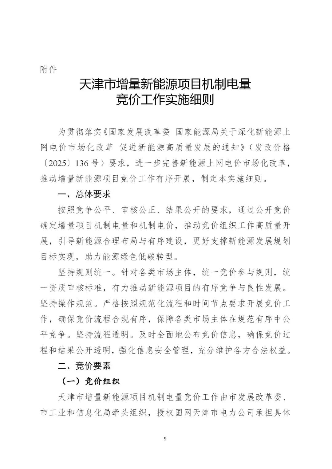 10月20日,天津市发展改革委、市工业和信息化局发布关于印发《天津市深化新能源上网电价市场化改革实施方案》的通知,其中包括《天津市增量新能源项目机制电量竞价工作实施细则》。