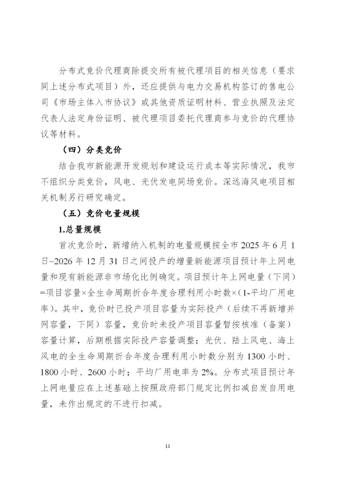 初步考虑2025年组织一次竞价,预计10月下旬开展,11月完成,2025年6月1日~2026年12月31日之间全部建成投产(后续不再新增并网容量)的风电、光伏项目可自愿参与竞价。自2026年起,年度竞价工作预计每年9月开展。