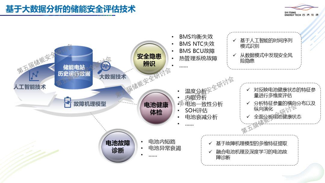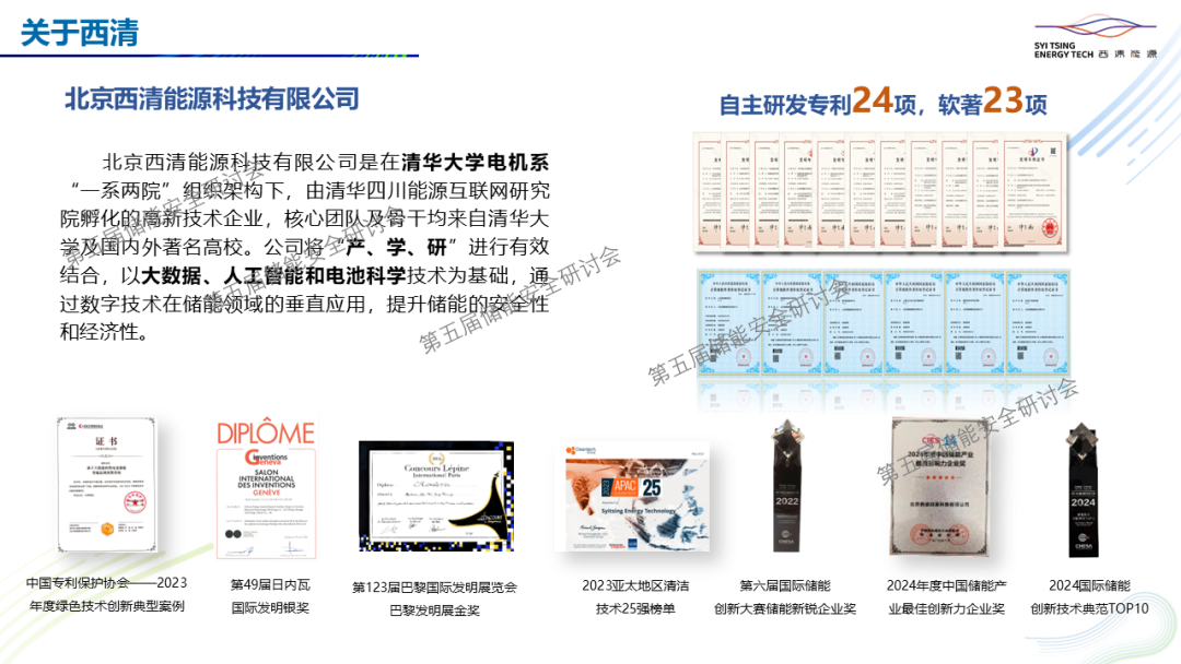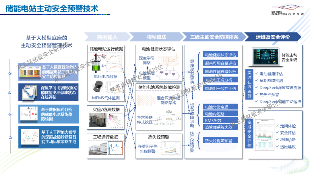 北京西清能源科技有限公司针对储能行业运行过程监测、预警的痛点,开发了一套储能主动安全风险监测预警和智能运维系统,通过采集储能电站 BMS 和 PCS 的运行数据,在数字空间构建各类模型与算法,实现对电池系统健康状态的评估。同时,基于大量工程数据、实验室老化实验、故障模拟实验数据及仿真数据,构建了储能系统关键设备故障特征库,可支撑对 BMS、热管理系统、电池本体等关键设备的故障预警与诊断,以及热失控预警。基于这些状态评估、故障预警和热失控预警算法,有多种的应用形式包括本地部署的实时在线监测、算法黑盒以及基于历史数据的定期安全评估。