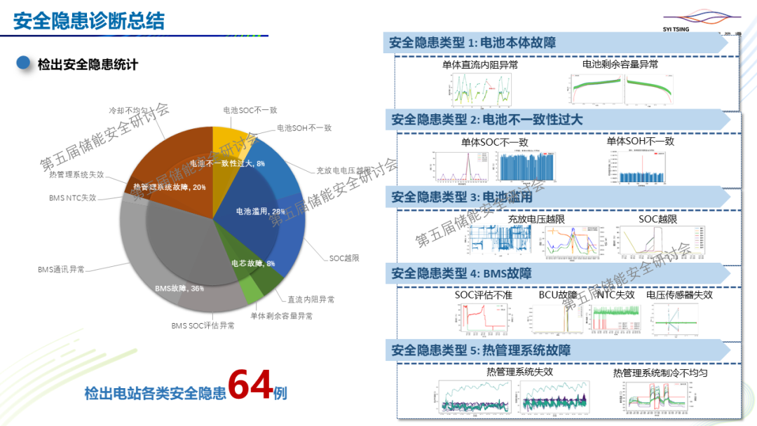 2、储能电站存在多类型安全隐患及早期故障,本次检出的64例故障中,BMS故障、电池滥用和热管理系统故障这三类占比重较大;