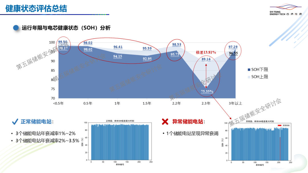国家标准《电化学储能电站运行规程》明确规定,储能电站投运后需定期评估设备健康状态,并列出了相关指标,这类设备性能与安全评价需以运行数据分析为技术支撑,但目前工程实践中普遍缺乏相应的产品与服务。不少企业的储能电站在检修时,因缺乏专业工具,仍依赖人工目视检查,这种方式难以发现电池包内部的真实状态,必须通过数据分析才能实现精准的安全评估。这也是此次做电池健康评估报告的核心基础。期待未来这种应用能够帮助储能电站的业主、运维方更好的管理储能电站,让储能发挥它的最大作用。