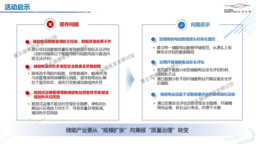 储能产业经过几年的快速发展,需要从过去单纯“规模扩张”转向兼顾“质量治理”,需要去构建 '数据驱动、安全评估、精细运维'三位一体的安全管理体系,具体建议: