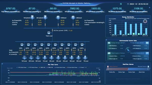 建筑工地的用电负载波动大,传统柴发机组常因“大马拉小车”导致燃料浪费。弘正EMS系统通过接入储能、柴发与电表数据,实时采集运行信息,动态调节系统状态——负载低时优先用储能,负载高时柴发智能补能。通过系统精准调度让工地发电机运行时长大幅缩短,燃料消耗与运维成本双降,在兼顾经济性与稳定性的同时,为工地提供可靠电力保障。