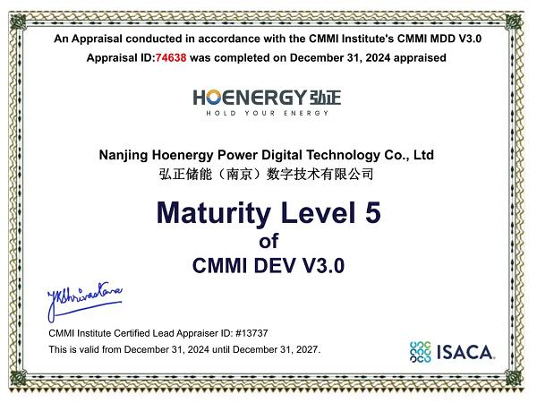 交付的底气,源于弘正深耕数字化储能赛道的长期积累。据悉,弘正储能(南京)数字技术有限公司已正式通过全球软件领域“天花板”认证——CMMI-DEV 3.0 5级,标志着企业在软件研发、服务交付的标准化、成熟度上达到国际先进水平。