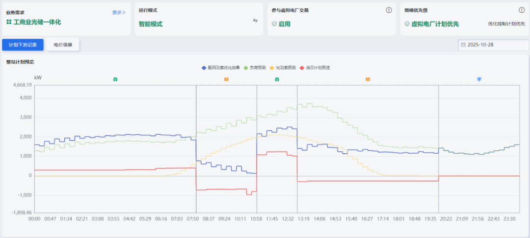 采日能源智慧运营平台以“智慧大脑”与“安全闭环”为双核引擎,重新定义能源资产的精细化运营与安全保障标准。平台全新升级的综合能源优化控制——智能模式,深度融合先进算法,实时解析电价信号、发电预测、负荷趋势及设备状态,自动生成并执行最优储能策略。在工商业储能及光储协同等多维场景中,精准实现削峰填谷、需量调控与动态扩容,不仅直接提升场站收益,更为未来多能协同体系的构建夯实基础。