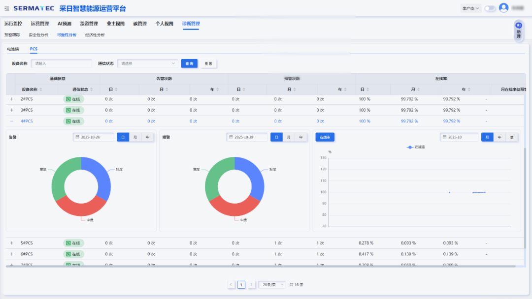 此次同步发布的采日能源大储运维系统,与智慧运营平台形成深度协同,聚焦大型储能系统全生命周期管理,支撑电网安全及“源网荷储”高效互动。系统提供从智能诊断到决策支持的一体化能力,与运营平台共同构建“安全提升”与“经济性提升”的双轮驱动价值体系:以前瞻性预警与闭环运维筑牢安全防线,以智能策略持续挖掘峰谷套利潜力、拓展电力交易收益空间,全面激活储能资产的综合价值潜能。