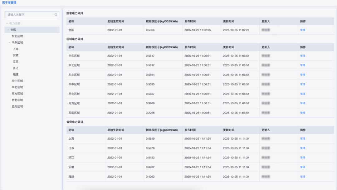 碳排放因子库管理