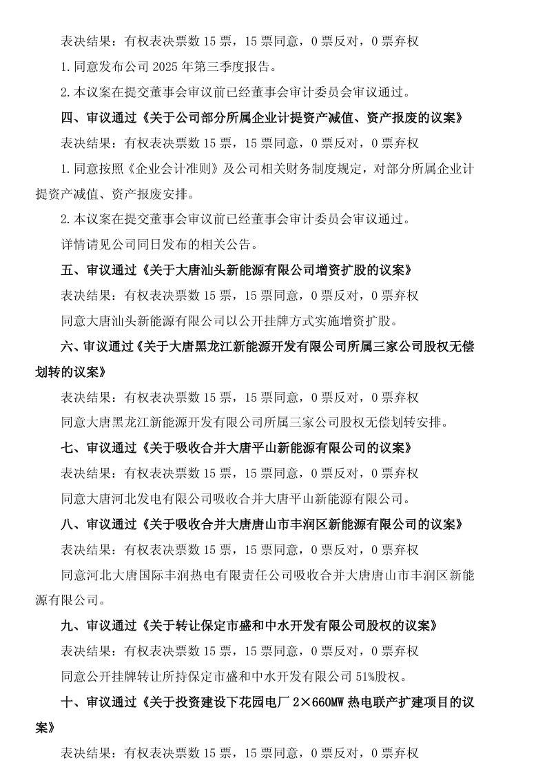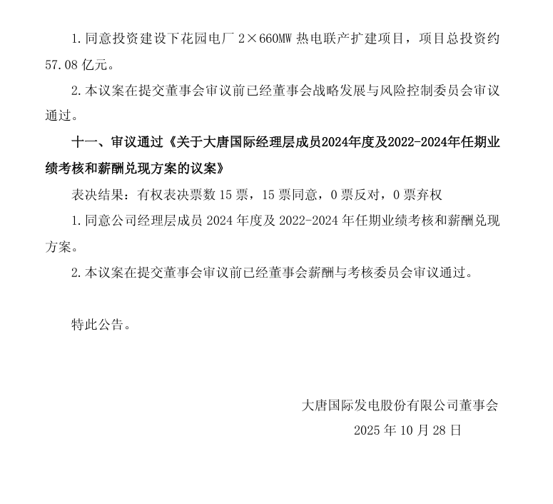 大唐发电发布公告称,公司第十二届六次董事会于10月28日召开。会议审议通过《关于选举公司第十二届董事会董事长的议案》,同意李霄飞先生为公司第十二届董事会董事长,任期自本次董事会选举通过之日起至第十二届董事会任期结束之日止。李凯先生不再担任公司第十二届董事会董事长职务。