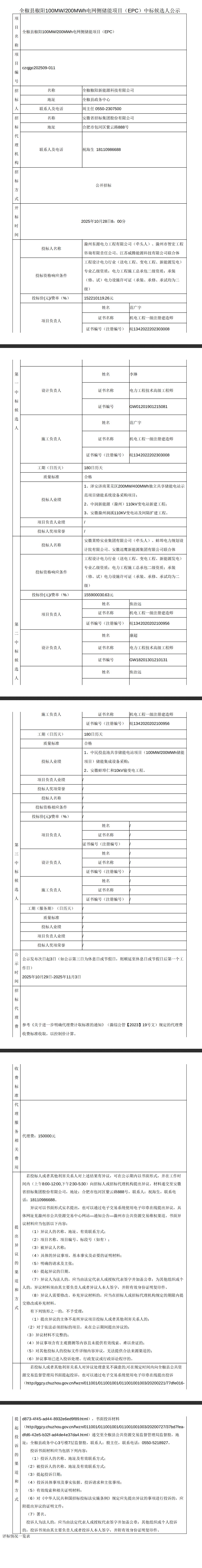 碳索储能网获悉,10月29日,全椒县椒阳100MW/200MWh电网侧储能项目(EPC)中标候选人公示。