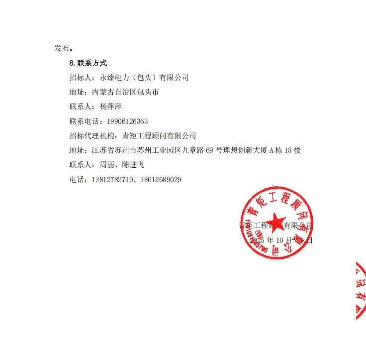 招标条件:本招标项目永臻电力(包头)有限公司包头市300MW/1800MWh储能电站项目已批准建设,招标人为永臻电力(包头)有限公司,建设资金来源为自筹。项目已具备招标条件,现进行公开招标。