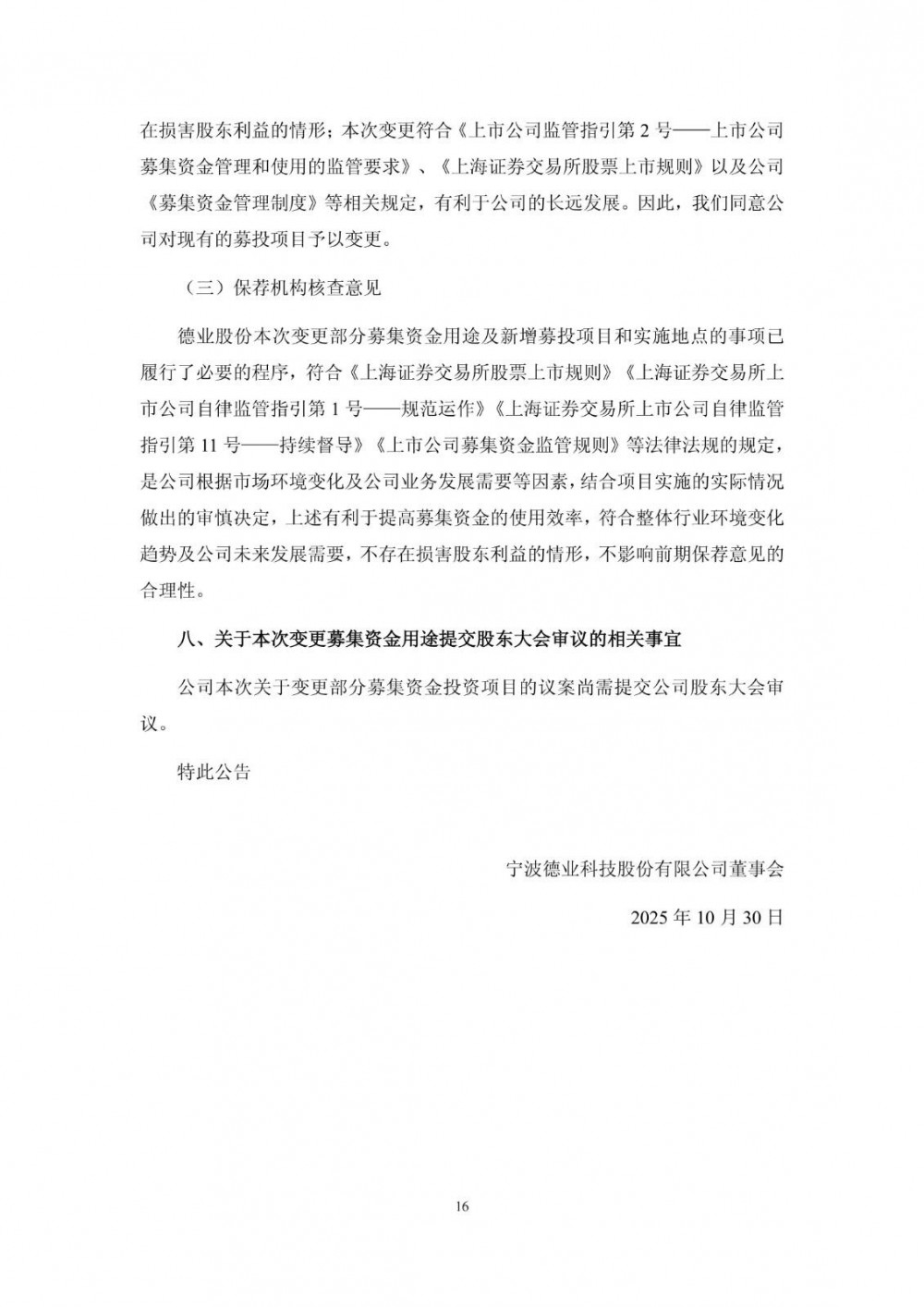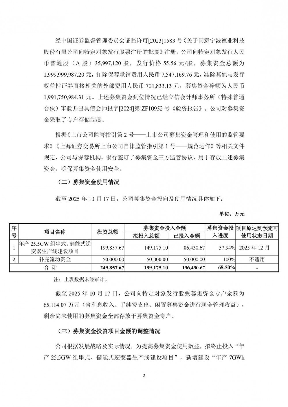 10月29日,宁波德业科技股份有限公司披露变更部分募集资金用途及新增募投项目和实施地点的公告,拟将募集资金投资项目“年产25.5GW组串式、储能式逆变器生产线建设项目”截至2025年10月17日暂未使用的募集资金65,114.07万元用于新项目建设,共计变更65,114.07万元。