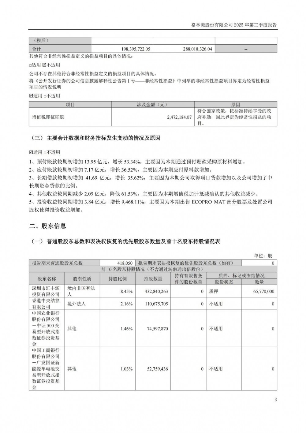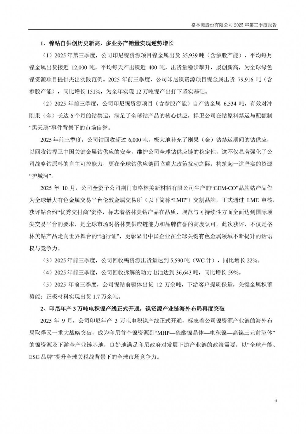 对于业绩增长的原因,格林美表示,2025年前三季度,公司关键金属资源循环利用、动力锂电池循环利用与新能源电池材料业务持续助力公司业绩增长,关键金属循环回收增量、印尼镍资源全面达产、高端新能源材料市场持续突破,推动公司业绩创历史新高。