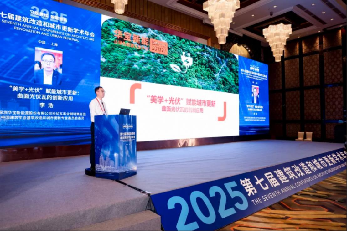 作为新能源领域唯一代表,华宝新能光伏瓦事业部销售总监李浩发表“‘美学+光伏’赋能城市更新”主题演讲,其全球首款量产XBC美学曲面光伏瓦方案,引发专家热议。