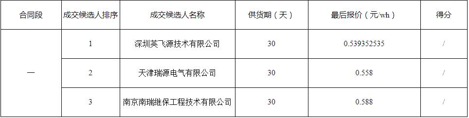 第一中标候选人为深圳英飞源技术有限公司,折合单价0.539352535元/Wh;