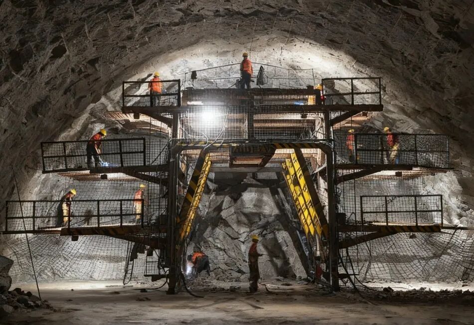 面对复杂的地质条件,技术团队在压缩空气领域首次采用水平进洞技术,可沿着岩层走向或稳定地层延伸,灵活避开断层,有效解决涌水带等不良地质问题。与传统垂直进洞或斜井进洞施工相比,水平进洞施工周期短、成本低、风险相对较低,施工交通运输更为便利。该技术能更精准地选择围岩完整性好、抗压强度高的岩层作为洞身主体,减少因深部地质突变(如软岩夹层、高水压区)导致的施工风险,在环境影响、经济性等方面也具有明显优势。