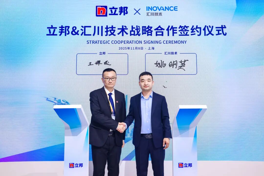11月8日,在上海的第八届中国国际进口博览会(以下简称“进博会”)上,汇川技术与立邦涂料正式签署战略合作协议。双方基于多年互信合作基础,将充分发挥各自在自动化控制与工业涂料领域的专业优势,围绕设备智能化、产线自动化、绿色制造等方向深化协同,共同探索工业领域数字化转型与可持续发展新路径。立邦中国技术研发副总裁蔡永岳博士、IU事业群汽车漆事业部轮值总经理王琛俊、销售经理陈志奇、汇川技术全球工业BG流程工业BU总监姚明英、行销资深经理乔宗立、上海润佳林总经理王芝琳等双方代表出席签约仪式。