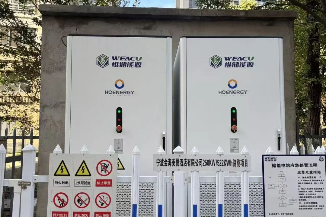 近日,惟储能源再传振奋人心的消息——由我司投建的宁波金海美悦酒店有限公司0.25MW/0.522MWh用户侧储能项目,已顺利完成并网调试,正式投入运行!这不仅是惟储能源在储能领域的又一标杆实践,更为宁波地区能源结构优化注入了新活力。