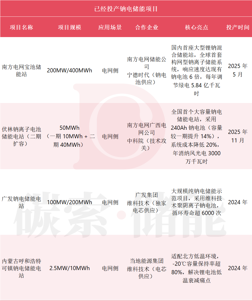 2024年,采用钠离子技术路线的大唐潜江50MW/100MWh储能电站并网,钠储技术走向规模化应用。2025年,钠离子电池则迎来了投产高峰。