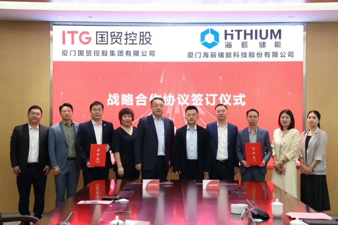 2025 年 11 月 14 日,海辰储能与厦门国贸控股集团有限公司(以下简称“国贸控股集团”)在厦门签署战略合作协议。国贸控股集团董事长郑永达,海辰储能联合创始人、总裁王鹏程出席并见证签约仪式;国贸股份常务副总裁刘志滔、海辰储能财务副总监苏振金分别代表双方签署协议。国贸股份总裁蔡莹彬与相关业务负责人出席仪式。