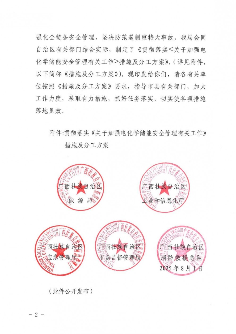 附件:广西壮族自治区能源局等5部门关于印发贯彻落实关于加强电化学储能安全管理有关工作措施及分工方案的通知.pdf