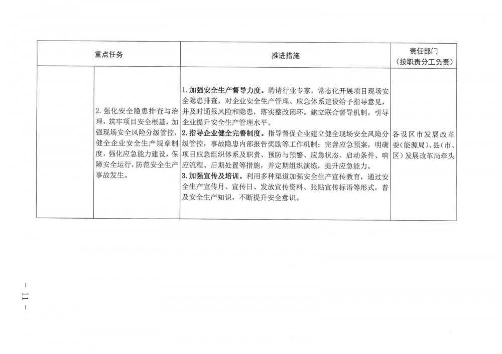 (三)加强督导与宣传培训。各县(区)、新区发展改革部门应联合相关部门及专家常态化开展安全隐患排查,督促企业严格落实安全生产主体责任,强化项目建设和运行各阶段安全设施建设和资金投入。各县(区)、新区发展改革部门,项目单位应积极组织开展安全生产宣传教育活动,通过“安全生产月”、专题培训、应急演练等多种形式,提升全社会特别是从业人员的安全意识和技能。