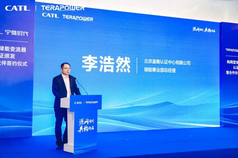 ▲北京鉴衡认证中心储能事业部总经理李浩然为时代天源颁发证书
