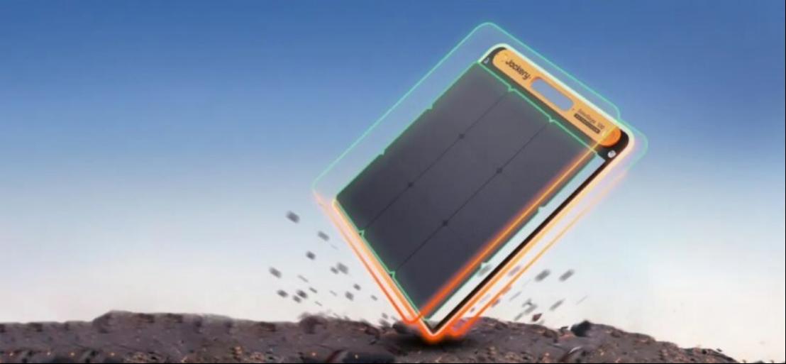 在消费级光伏赛道,“高转化率”与“高耐候性”的平衡始终是行业难题。华宝新能的破局关键在于核心技术的创新突破——其主力产品SolarSaga 100W搭载行业领先的IBC电池技术,双面发电设计使光电转换效率高达25%,实现高效快充,远超行业平均水平。凭借磁吸人体工学提手、专利支架等人性化设计,产品可便携折叠、收放自如,不仅引领了该品类“高效+便携”的设计新风向,其标志性双橙色提手也成为 Jackery 电小二极具辨识度的品牌视觉符号。