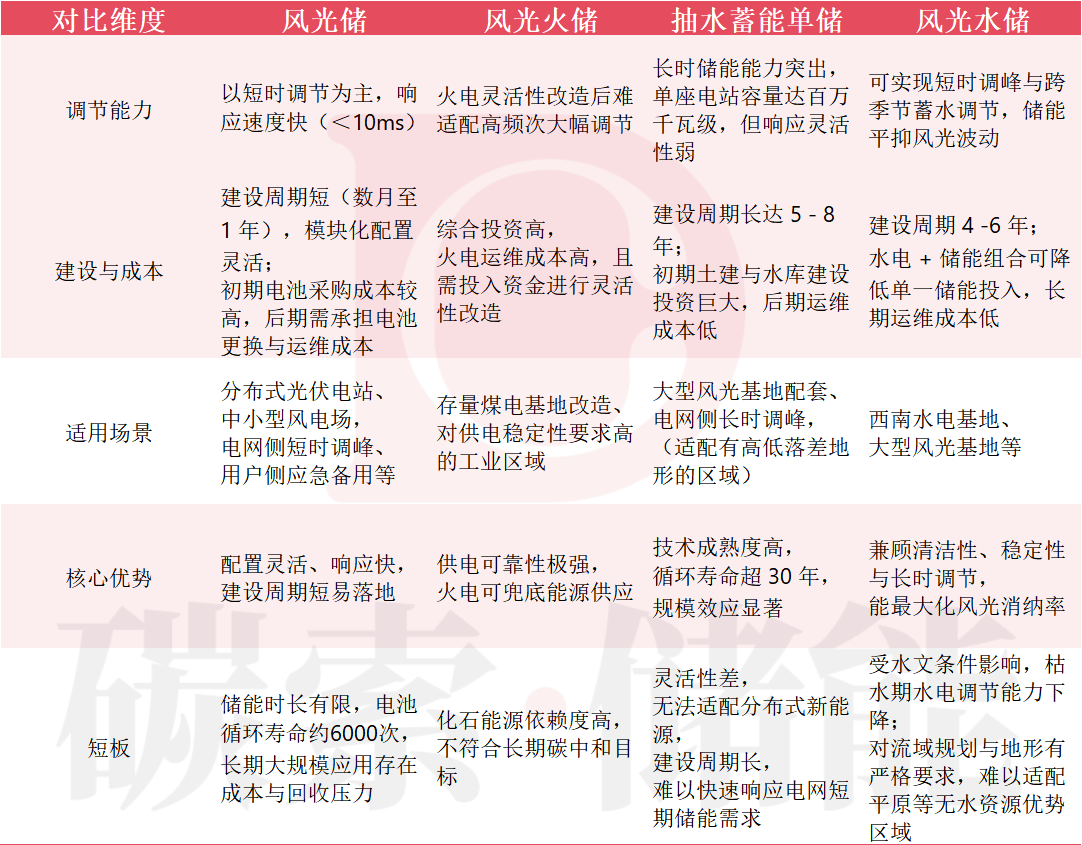 相比而言,水风光储优势非常明显。一方面,水风光储仅需5%-15%的储能装机比例,远低于风光配储的20%-50%,成本优势显著;另一方面,水电出力稳定性强,与储能的电网调节协同场景更清晰,项目收益确定性更高。