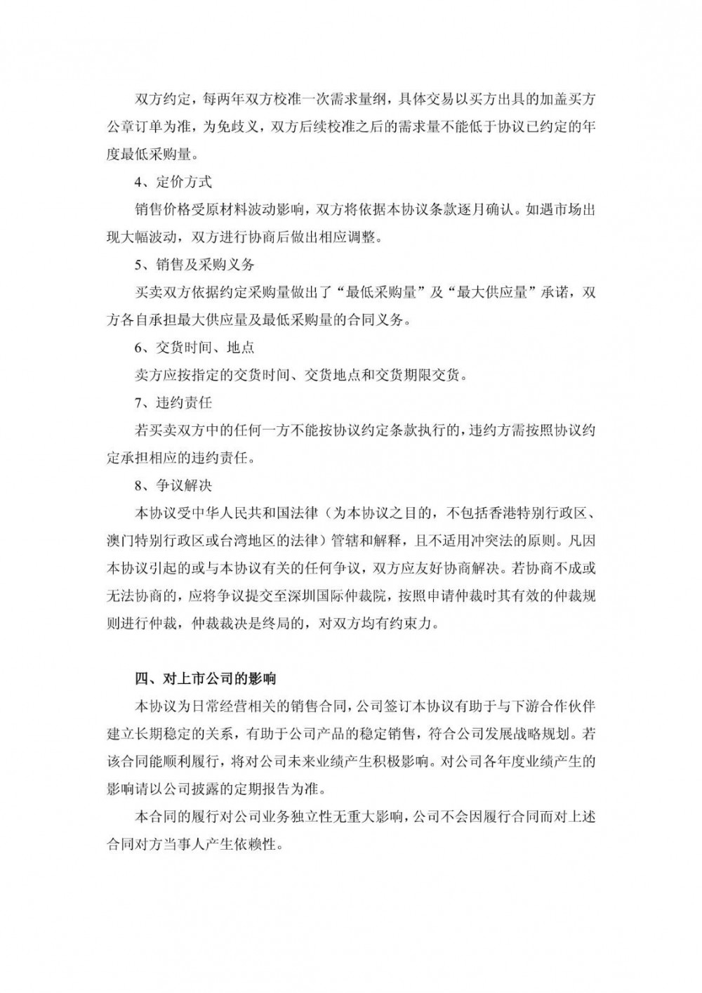12月2日,龙蟠科技发布公告称,公司控股孙公司LBM New Energy (AP) Pte. Ltd.与Sunwoda Automotive Energy Technology (Thailand) Co., Ltd签署了《长期采购协议》。协议约定,预计将由锂源(亚太)自2026年至2030年间合计向Sunwoda销售10.68万吨符合双方约定规格的磷酸铁锂正极材料,并约定最低采购量与最大供应量,双方约定每两年校准一次需求量纲,校准后的需求量不低于协议已约定的年度最低采购量。具体单价由双方根据协议条款逐月确定,如按照预计数量及市场价格估算,合同总销售金额约人民币45-55亿元(最终根据销售订单据实结算)。