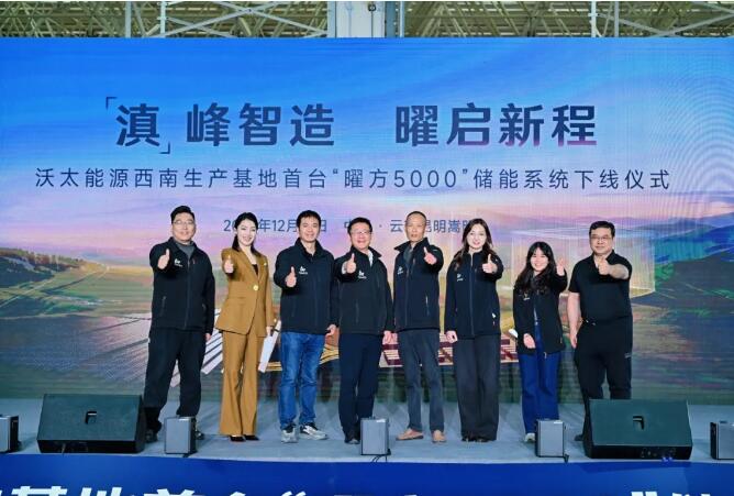 12月15日,沃太能源西南生产基地“曜方5000”液冷储能系统下线仪式在云南省昆明市嵩明县杨林经开区隆重举行。活动以“滇峰智造·曜启新程”为主题,宣告基地自今年5月开工以来,圆满完成从建设阶段向设备量产阶段的跨越,为项目全面投产奠定坚实基础。