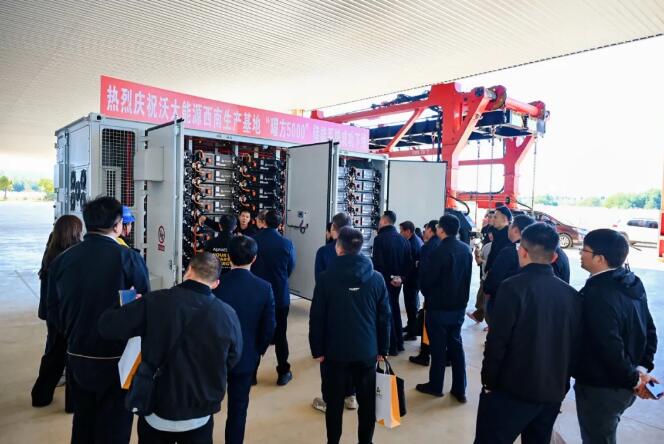 仪式期间,与会领导和嘉宾实地参观产线布局和制造流程,详细了解“曜方5000”液冷储能系统的技术特点和应用场景,并围绕产品性能、安全设计及后续规划进行现场交流,同时对基地建设成果和运行情况表示认可。